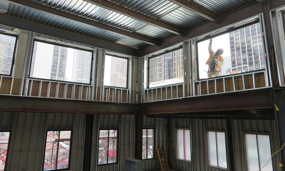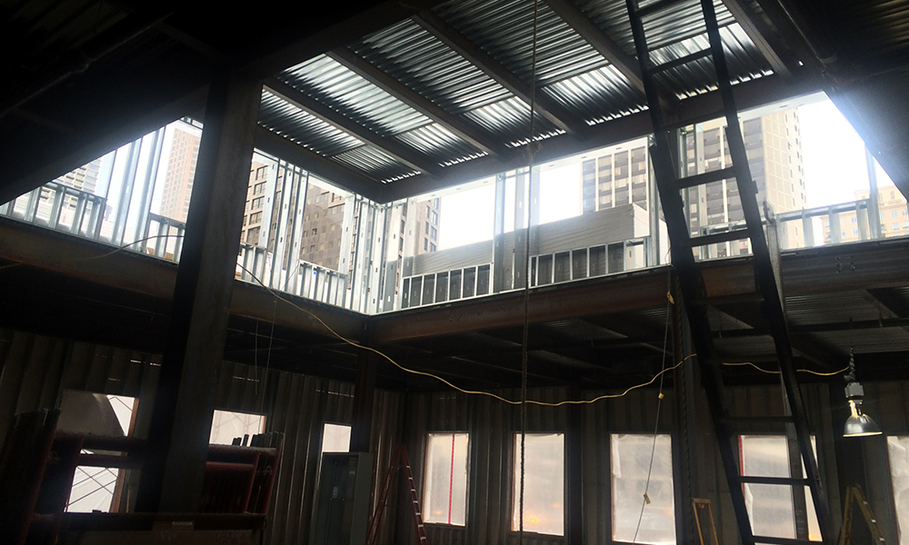 Located in the epicenter of Chicago’s Gold Coast restaurant district, 1100 N State had been known as the Hunt club for many years. As this neighborhood has evolved over the years, so too was the look at feel of this staple corner. Centaur was selected as the General Contractor to assist in this grand transformation at Maple and State Street. This new 4 story development needed to embrace the history of its surroundings. With its vintage masonry, classic glazing and structural steel elements, it served as the perfect canvas for it retail nucleus. Urban Outfitters now occupies its base and complements the building with its massive exposed staircase and it rough interior finishes. The development was to also serve as home to the pinnacle of Chicago dining, Maple & Ash Restaurant which occupied a portion of the ground floor as well as the entire 3rd and 4th floors of the building. The restaurant’s menu and energy are complimented by its elegant and plush finishes. Although this structure is new to this corner, every aspect of its design and finish lend itself to fitting in like many of the historic structures surrounding it.